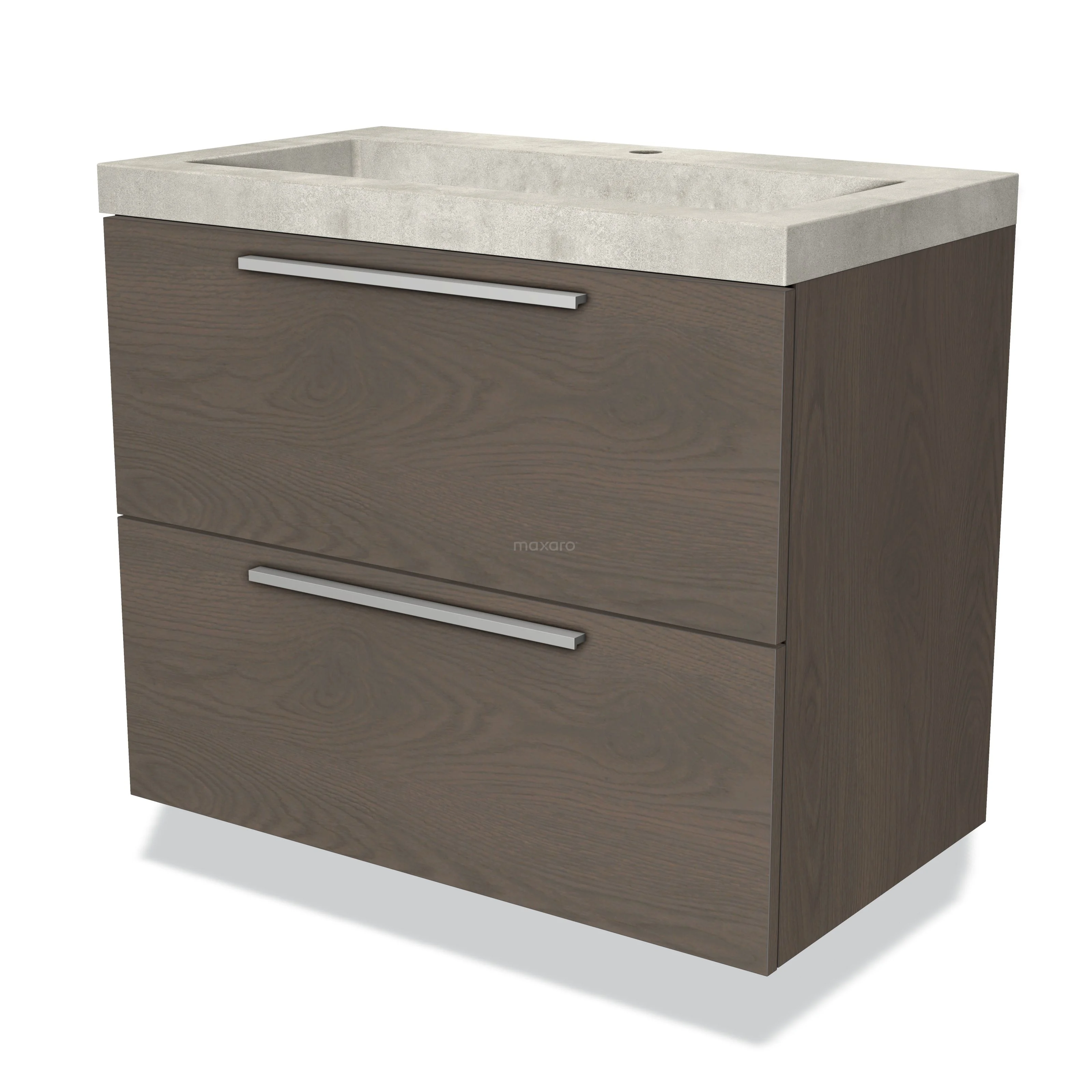 Modulo Bathroom furniture with sink | 80 cm Dark brown oak Flat front Concrete 2 Stacked drawers