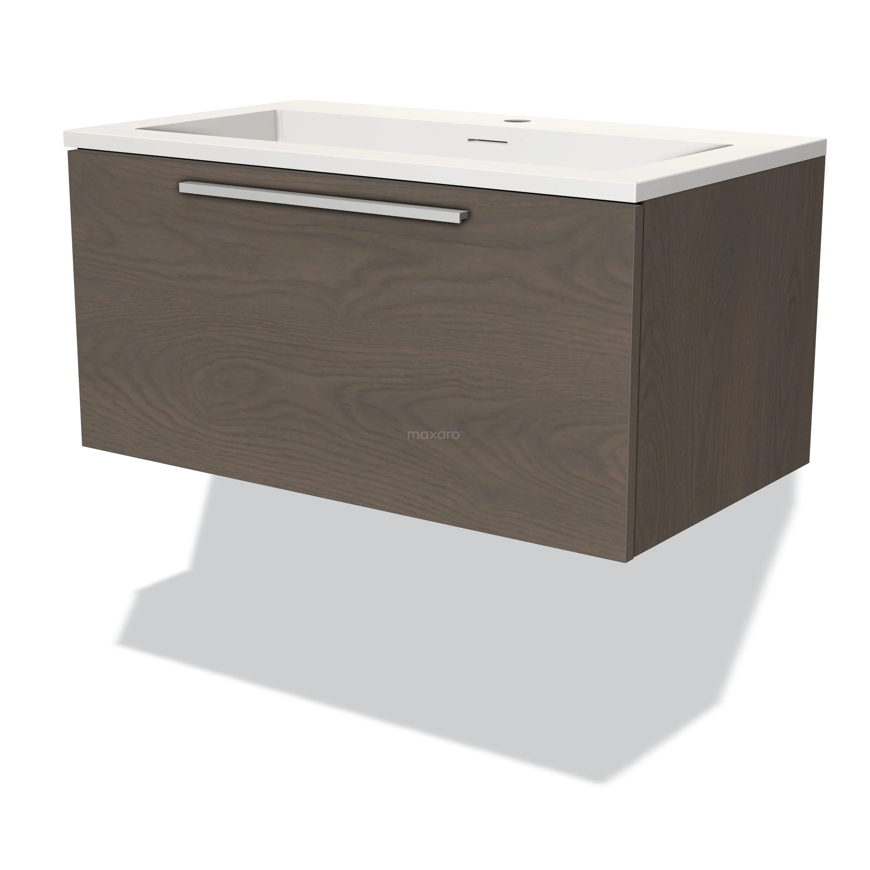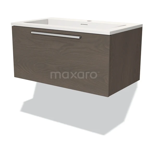 Modulo Bathroom furniture with sink | 80 cm Dark brown oak Flat front Solid surface 1 drawer