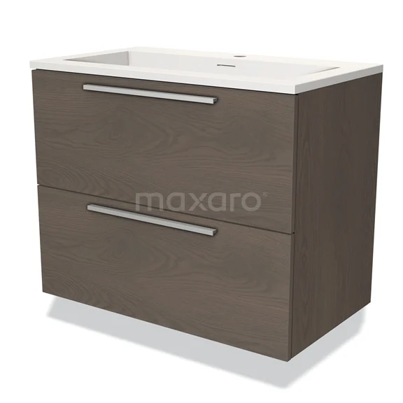 Modulo Bathroom furniture with sink | 80 cm Dark brown oak Flat front Solid surface 2 Stacked drawers