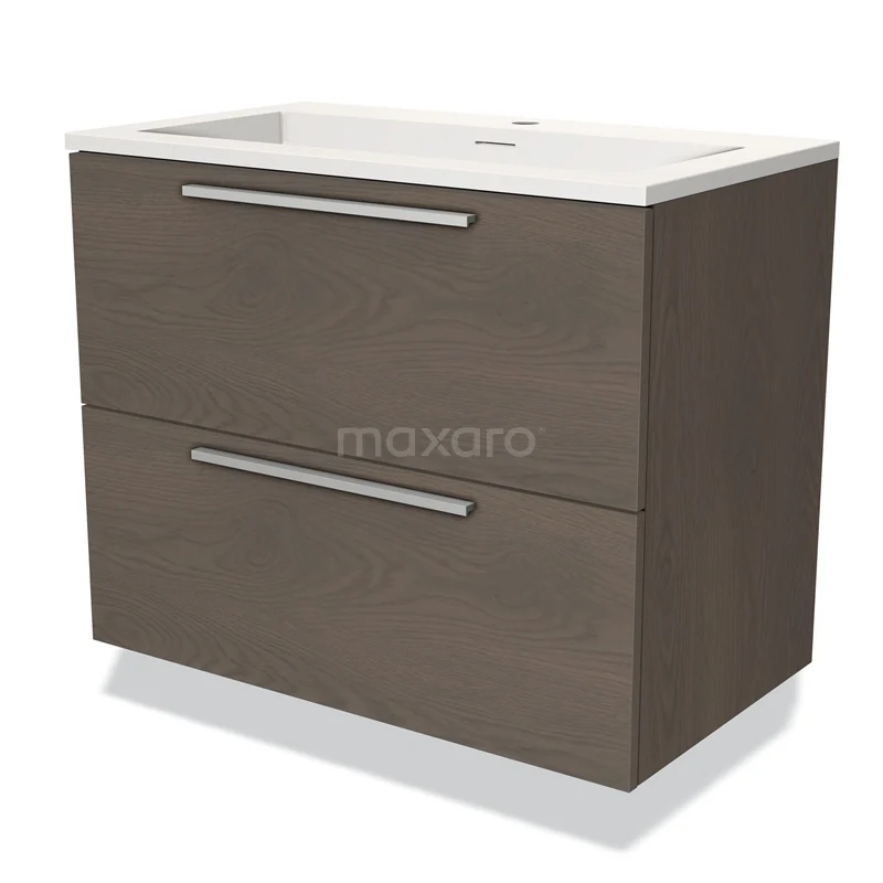 Stylish design The stylish design makes this bathroom unit the eye-catcher of your bathroom. The base cabinet features a flat front and has a dark brown oak finish. This beautiful oak look creates a warm atmosphere in your bathroom interior. In addition, the flat front provides a timeless touch. You will need to joint the handles yourself. These are available in different colours and shapes.