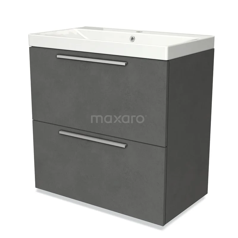 Modulo Bathroom furniture with sink | 80 cm Dark grey concrete Flat front Ceramic 2 stacked drawers under each other