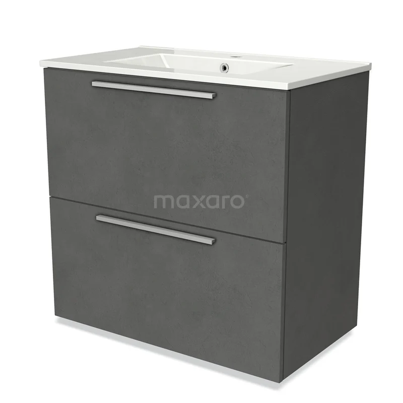 Modulo Bathroom furniture with sink | 80 cm Dark grey concrete Flat front Ceramic 2 stacked drawers under each other
