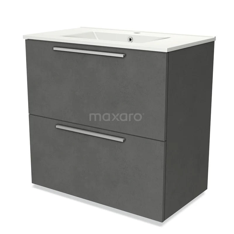 Modulo Bathroom furniture with sink | 80 cm Dark grey concrete Flat front Ceramic 2 stacked drawers under each other