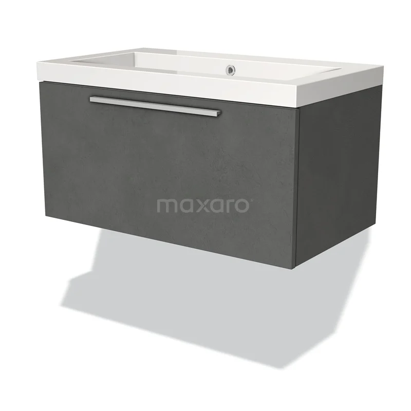 Modulo Bathroom furniture with sink | 80 cm Dark grey concrete Flat front Mineral marble 1 drawer