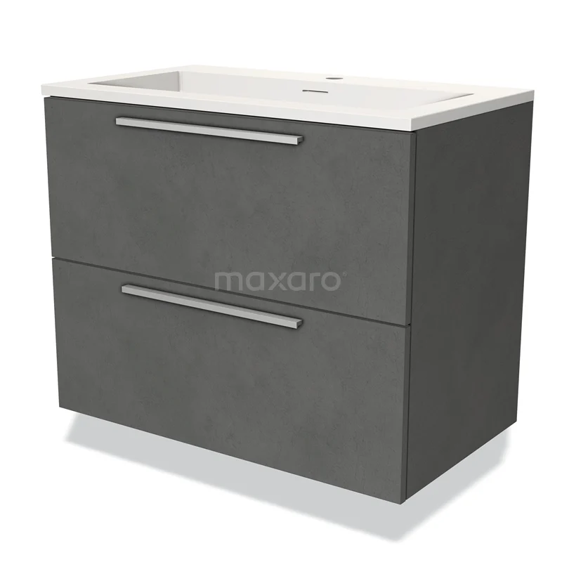 Modulo Bathroom furniture with sink | 80 cm Dark grey concrete Flat front Solid surface 2 Stacked drawers