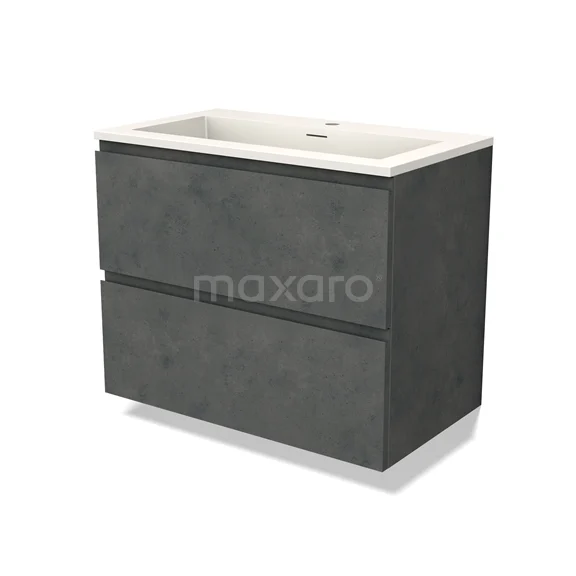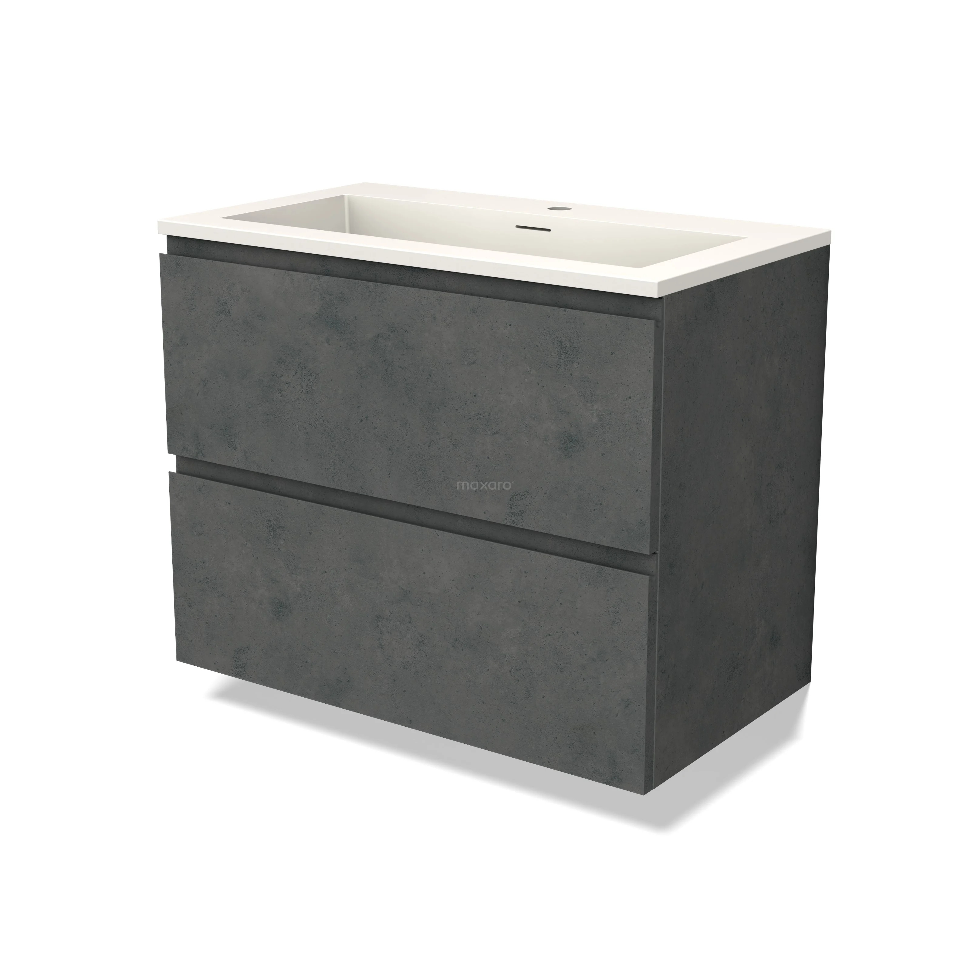 Modulo Bathroom furniture with sink | 80 cm Dark grey concrete Handle-less front Solid surface 2 Stacked drawers