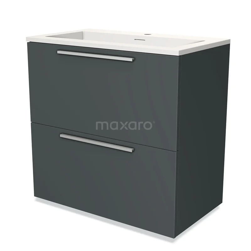 Modulo Bathroom furniture with sink | 80 cm Dark grey Flat front Solid surface 2 stacked drawers under each other