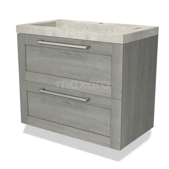 Modulo Bathroom furniture with sink | 80 cm Grey oak Frame front Concrete 2 Stacked drawers