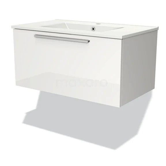 Modulo Bathroom furniture with sink | 80 cm High-gloss white Flat front Ceramic 1 drawer