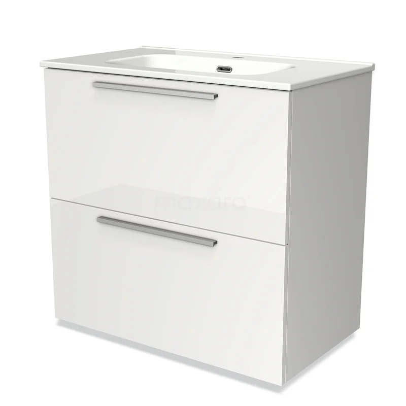 Modulo Bathroom furniture with sink | 80 cm High-gloss white Flat front Ceramic 2 stacked drawers under each other