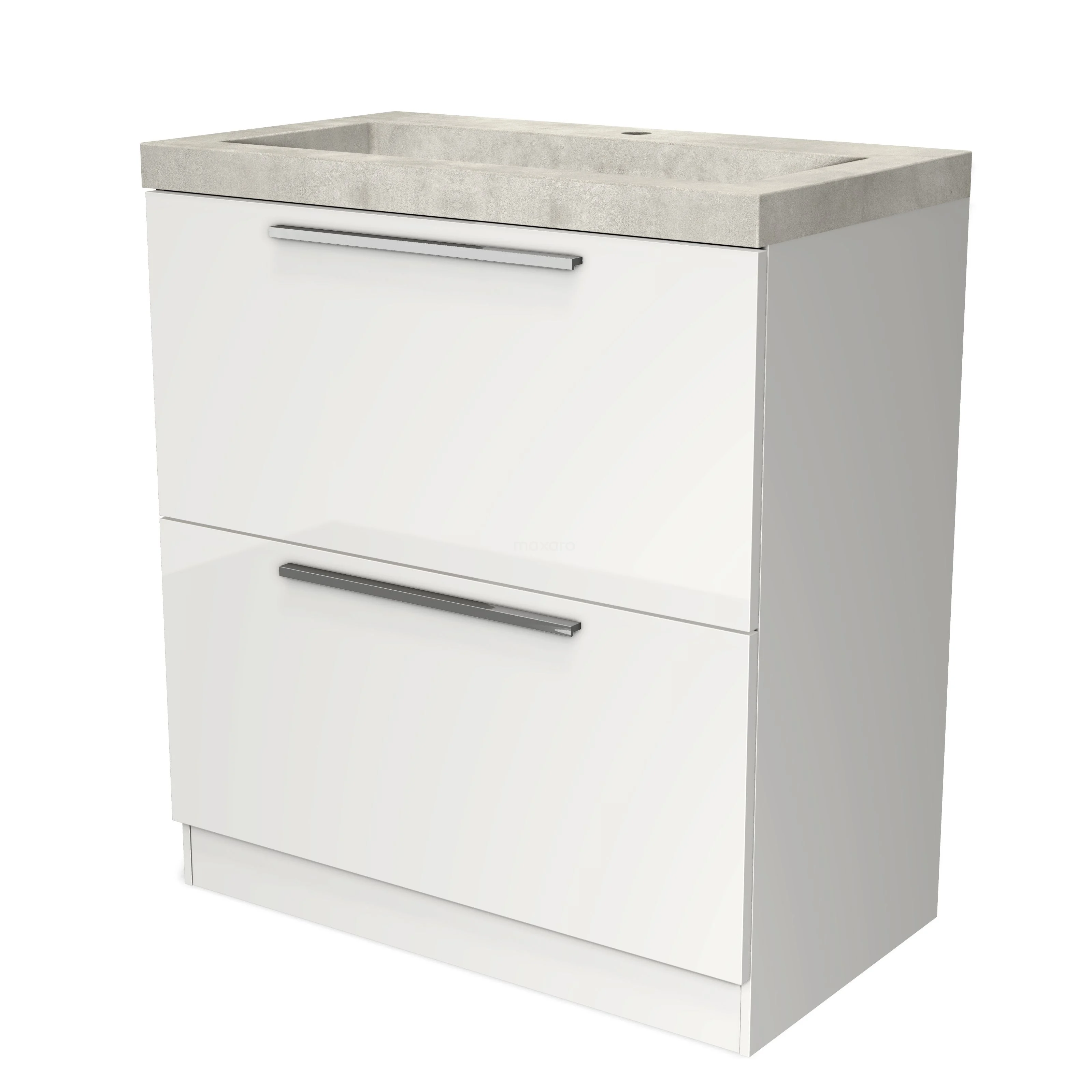 Modulo Bathroom furniture with sink | 80 cm High-gloss white Flat front Concrete 2 high drawers standing drawers under each other