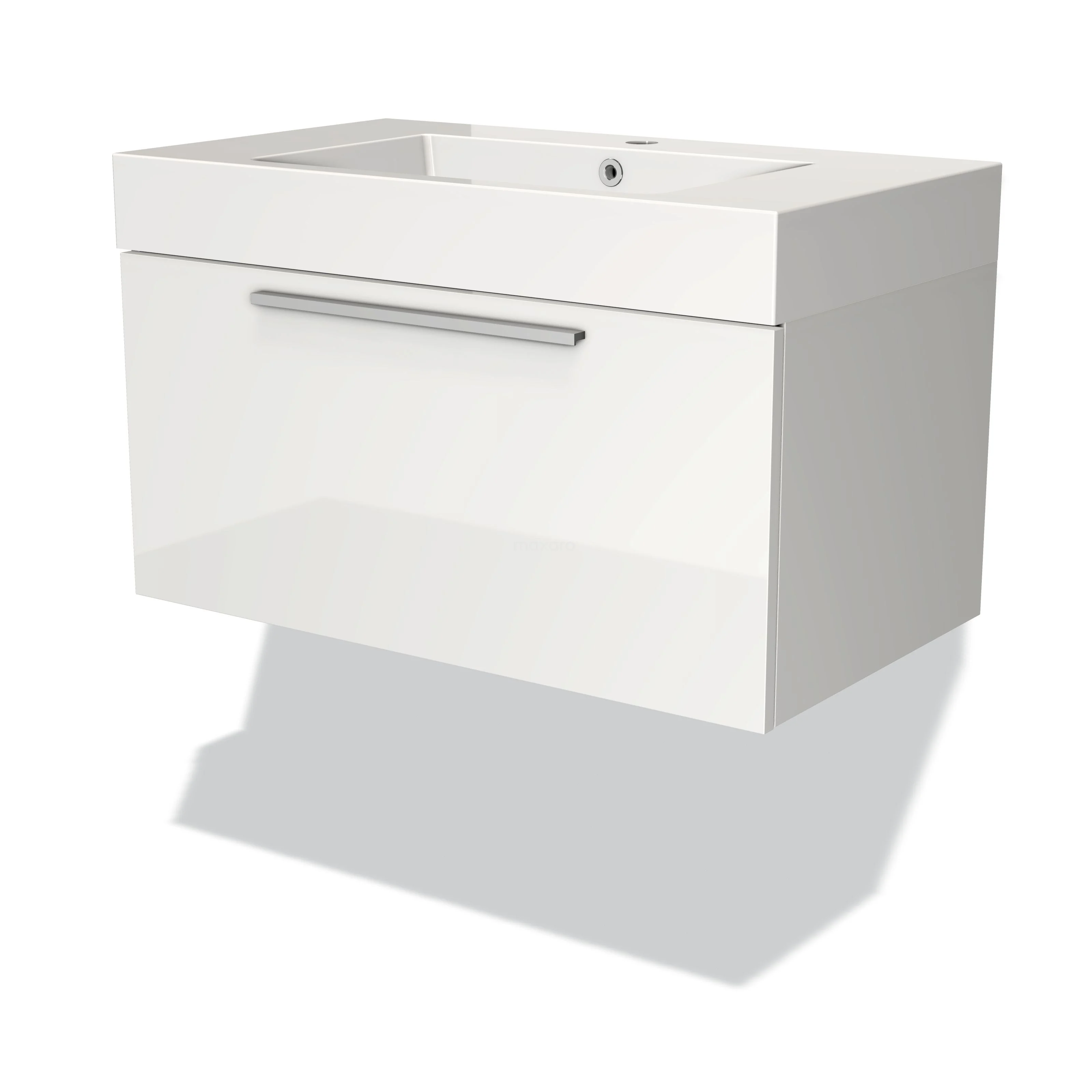 Modulo Bathroom furniture with sink | 80 cm High-gloss white Flat front Mineral marble 1 drawer
