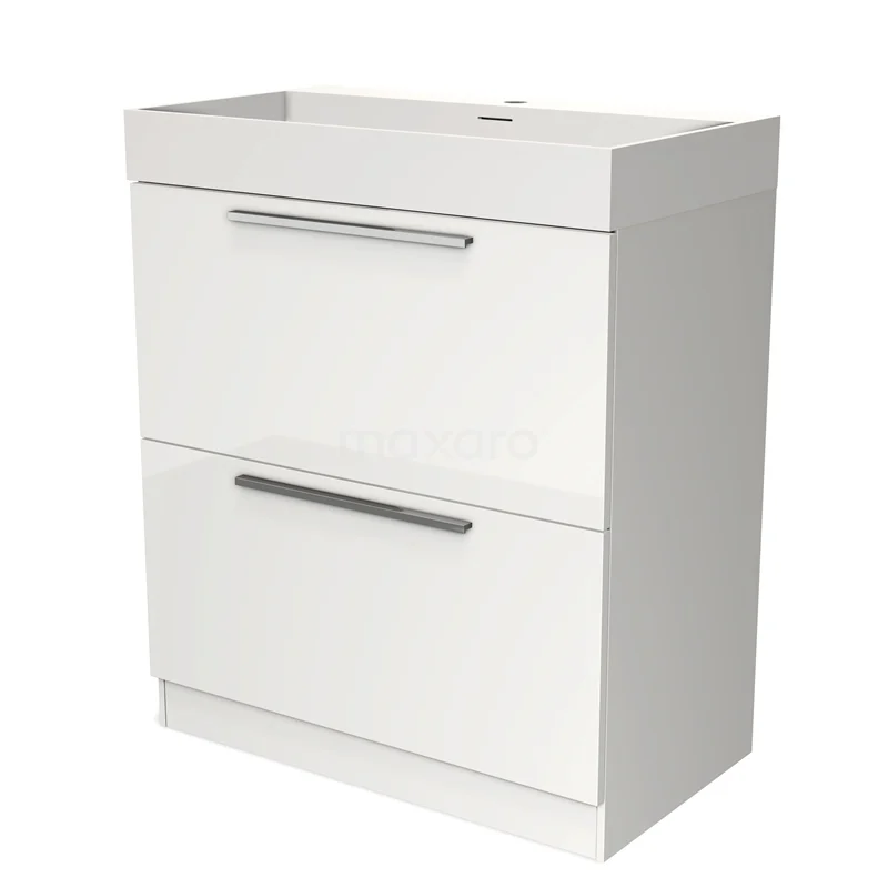 Modulo Bathroom furniture with sink | 80 cm High-gloss white Flat front Solid surface 2 high drawers standing drawers under each other