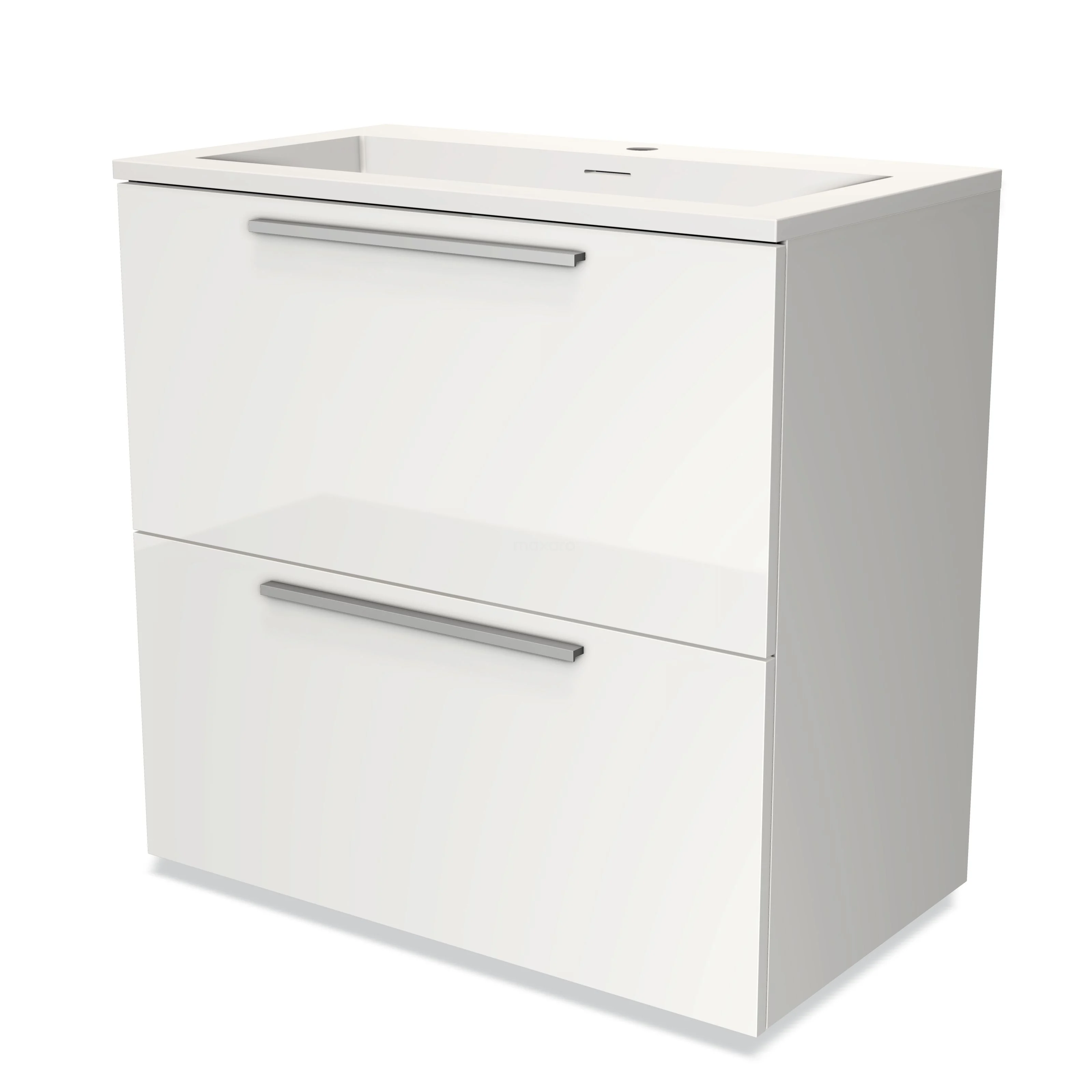 Modulo Bathroom furniture with sink | 80 cm High-gloss white Flat front Solid surface 2 stacked drawers under each other