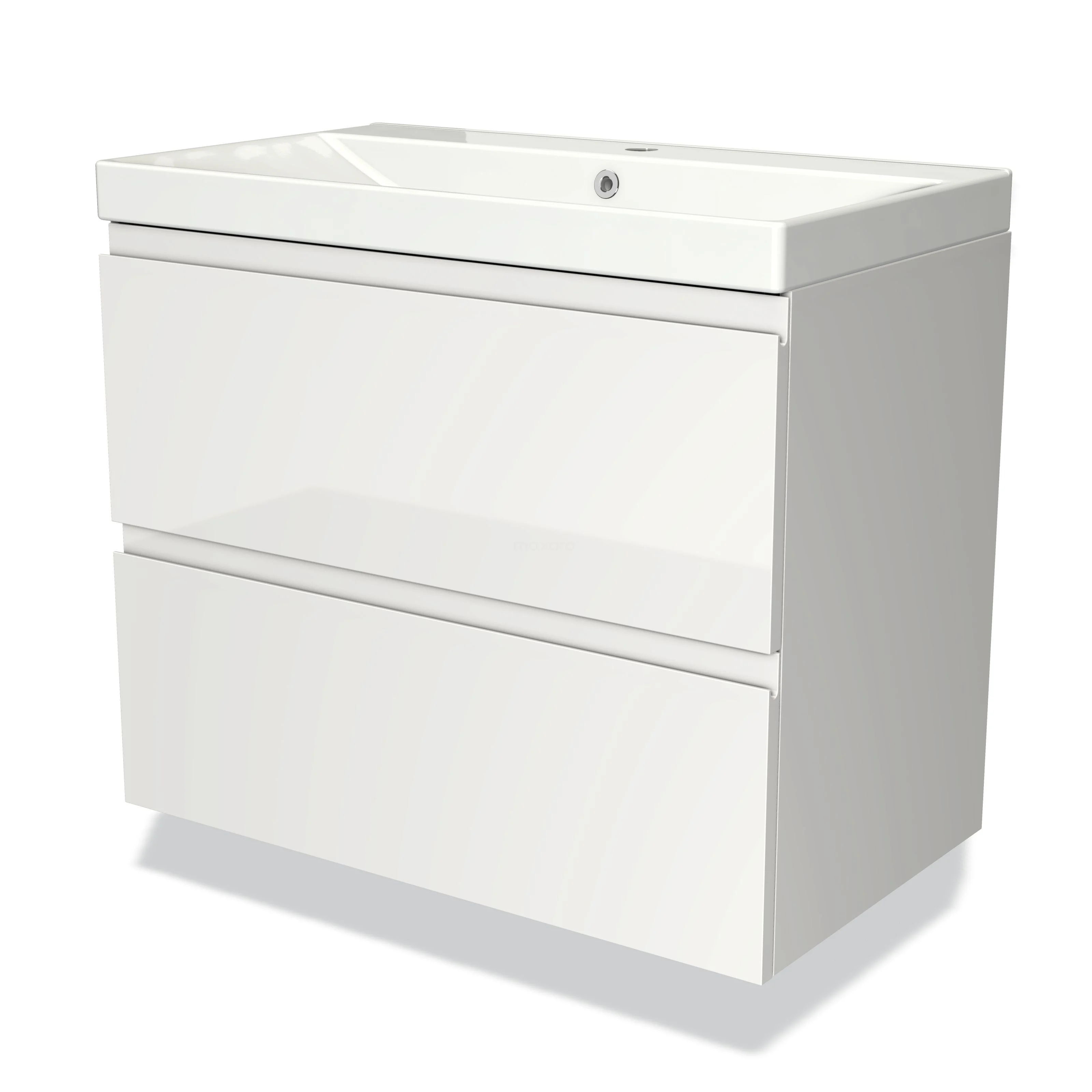 Modulo Bathroom furniture with sink | 80 cm High-gloss white Handle-less front Ceramic 2 Stacked drawers