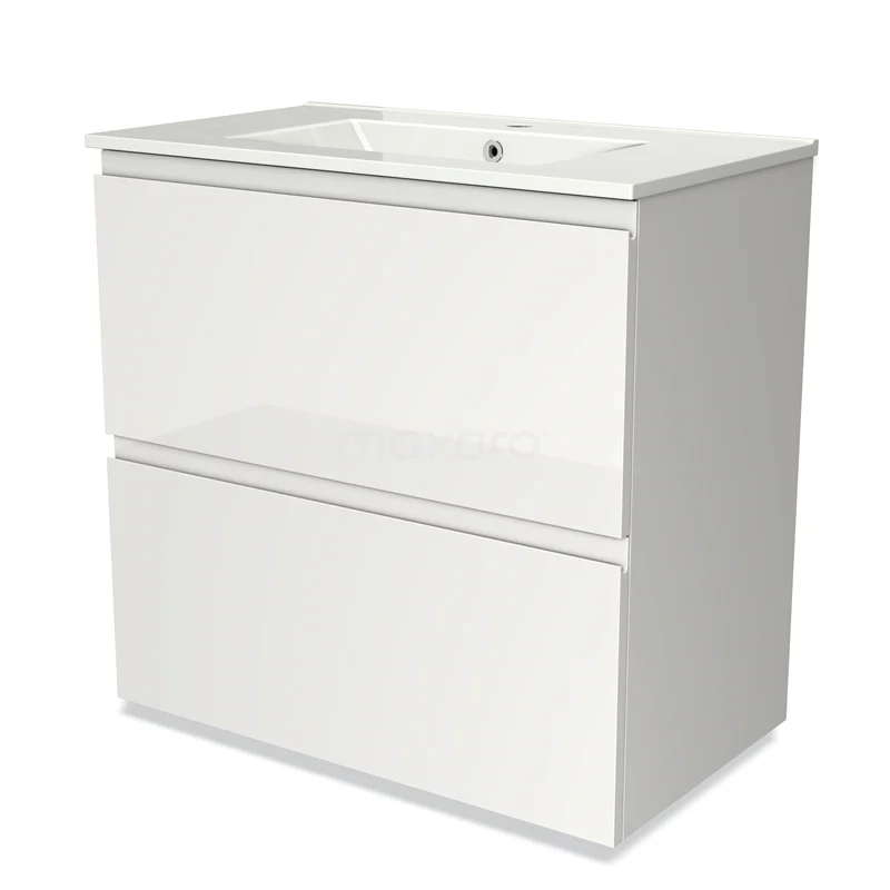 Modulo Bathroom furniture with sink | 80 cm High-gloss white Handle-less front Ceramic 2 stacked drawers under each other