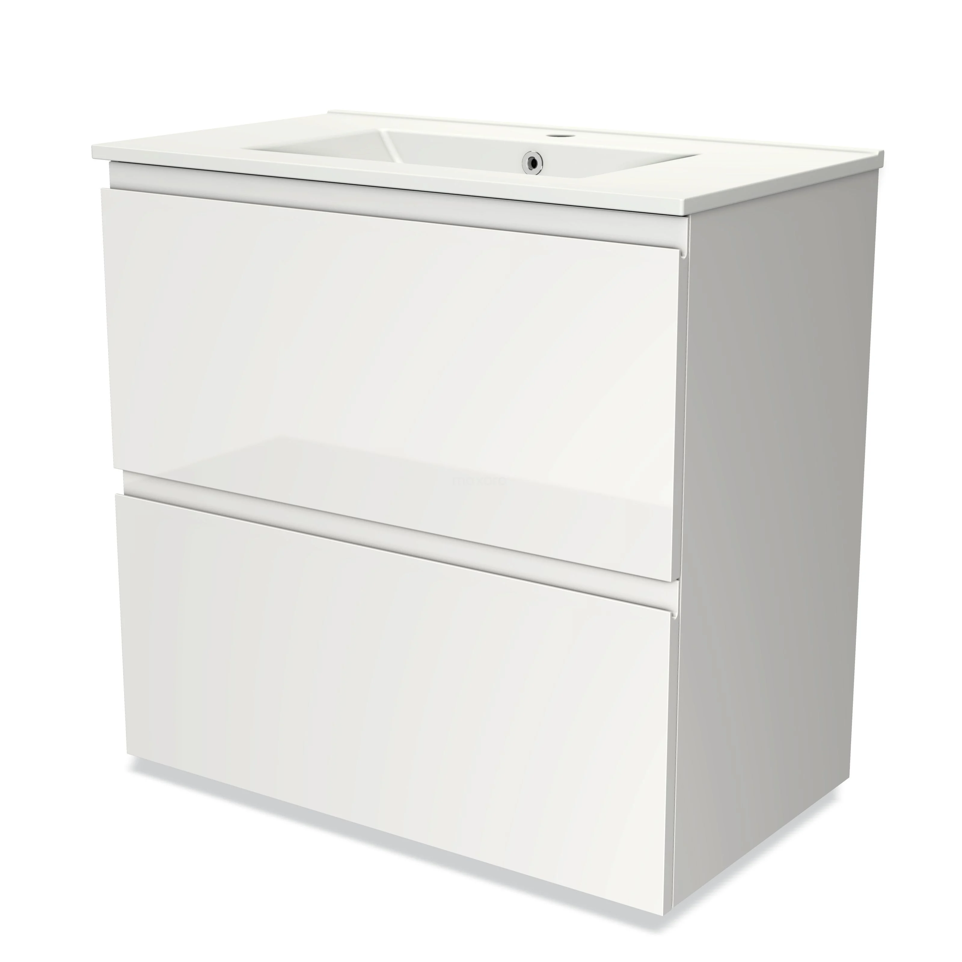 Modulo Bathroom furniture with sink | 80 cm High-gloss white Handle-less front Ceramic 2 stacked drawers under each other