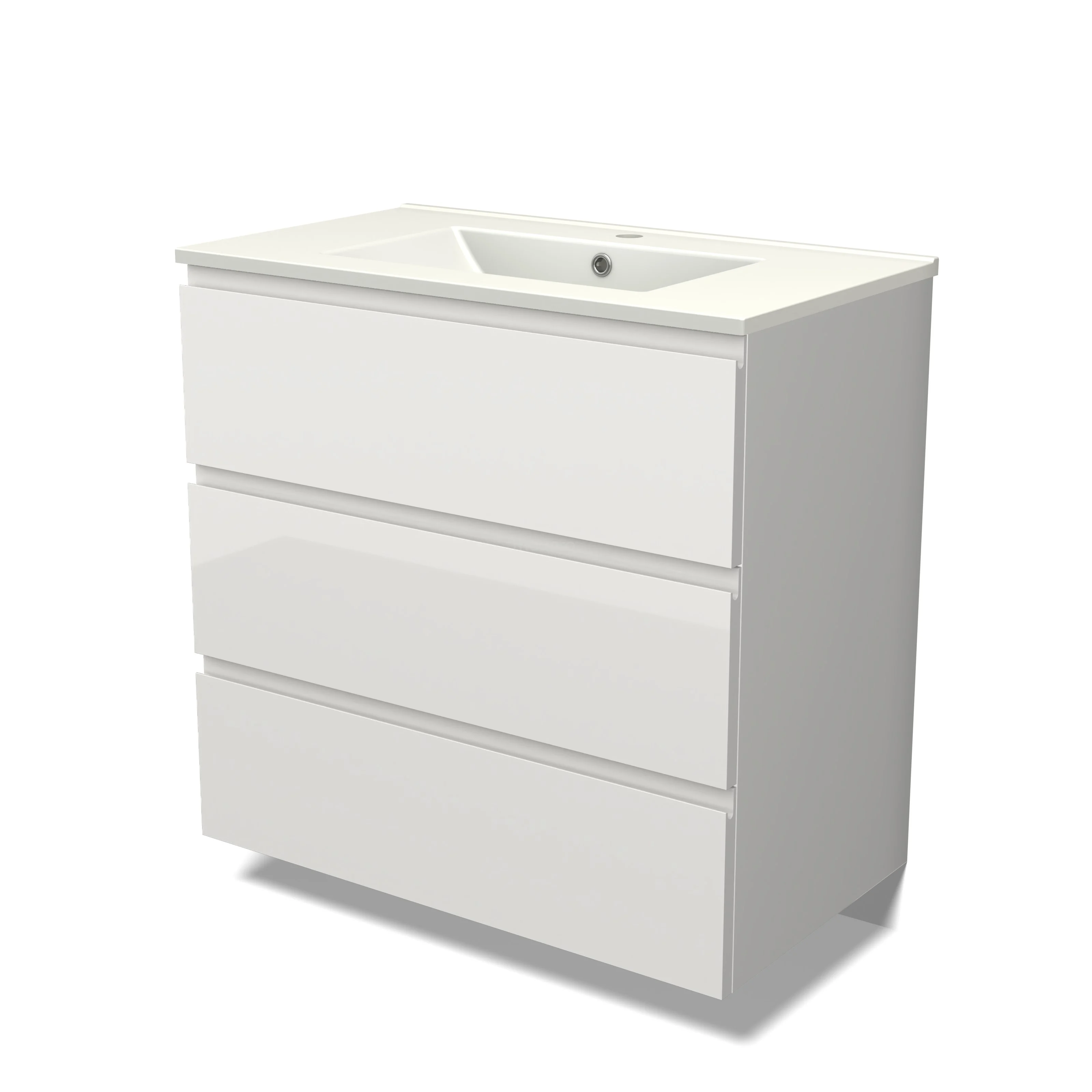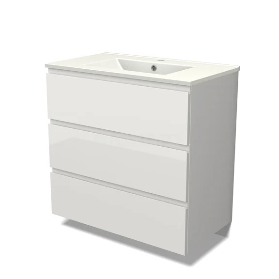 Modulo Bathroom furniture with sink | 80 cm High-gloss white Handle-less front Ceramic 3 drawers
