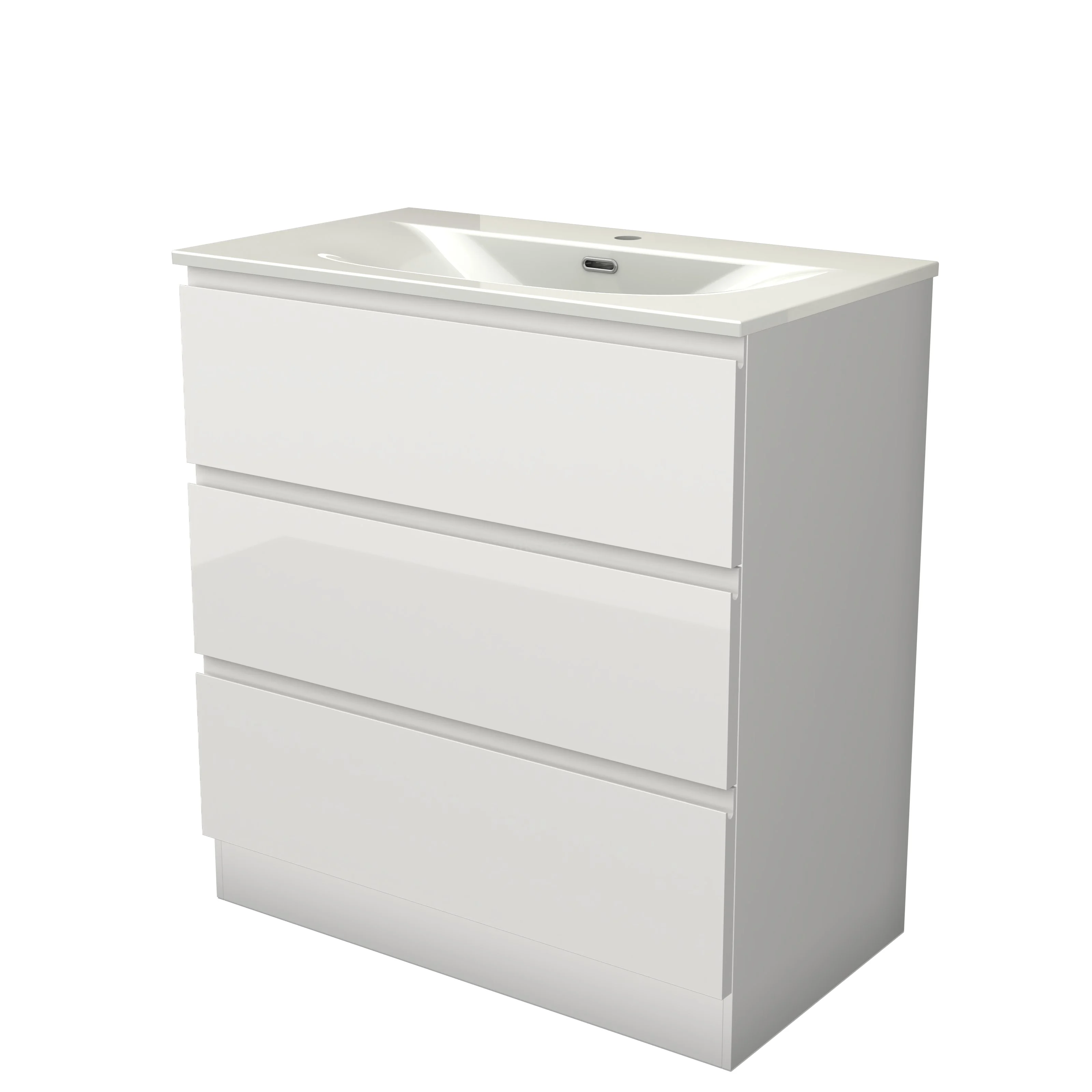Modulo Bathroom furniture with sink | 80 cm High-gloss white Handle-less front Ceramic 3 standing drawers