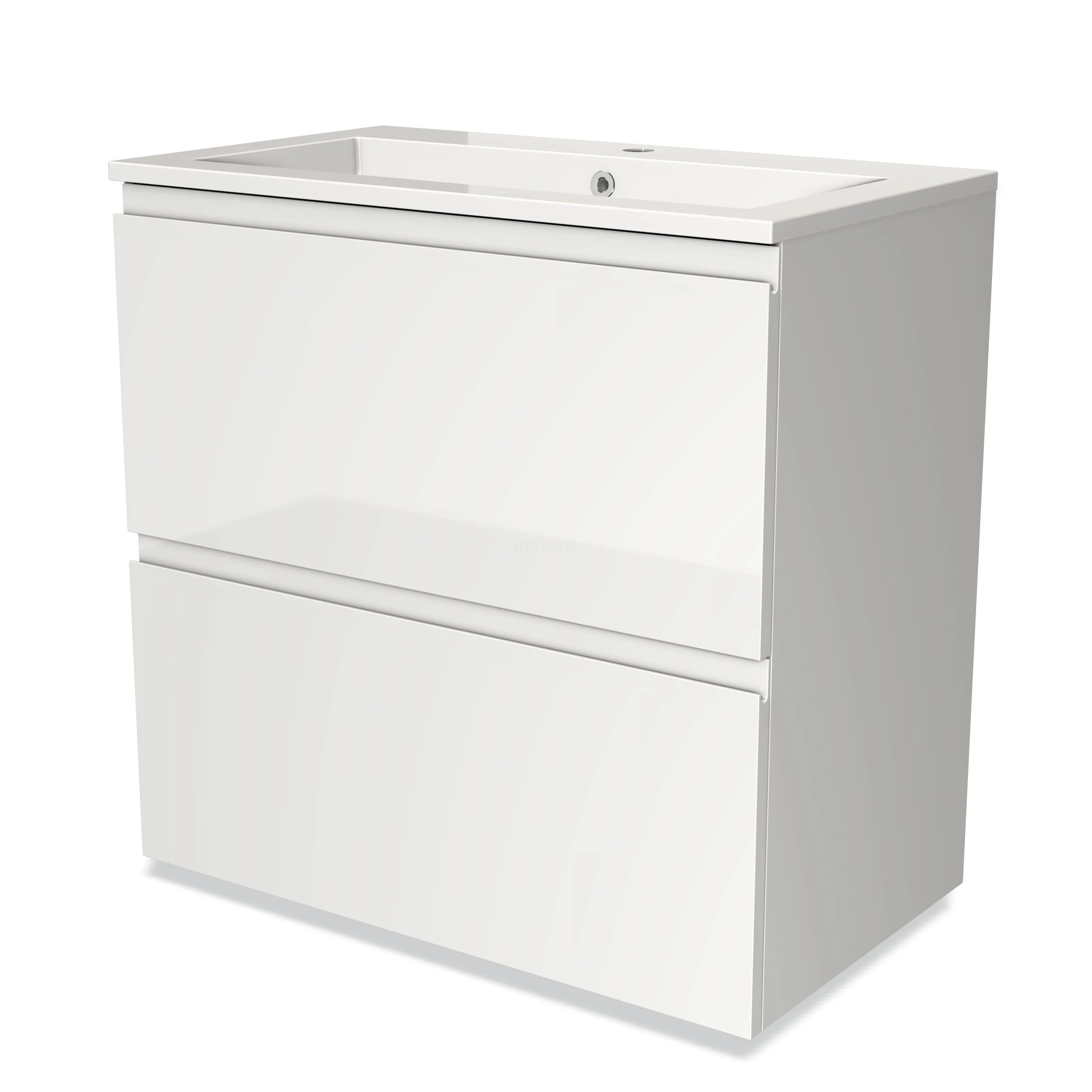 Modulo Bathroom furniture with sink | 80 cm High-gloss white Handle-less front Mineral marble 2 stacked drawers under each other