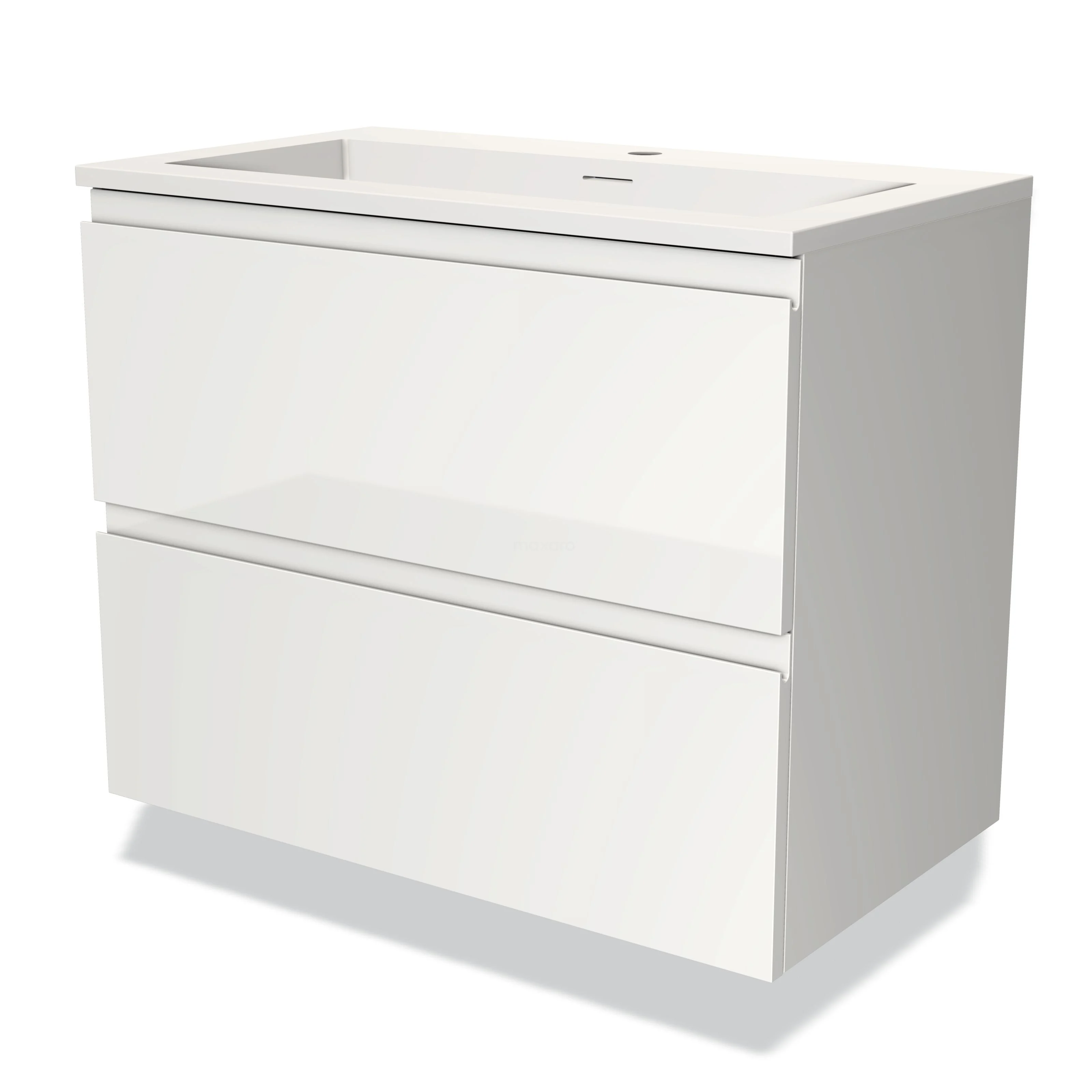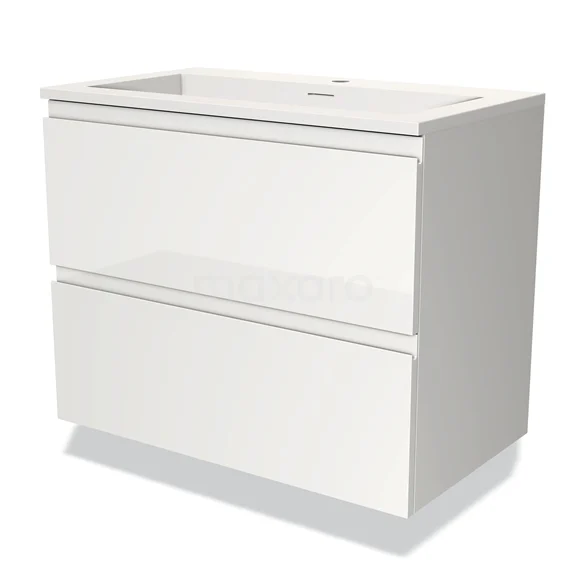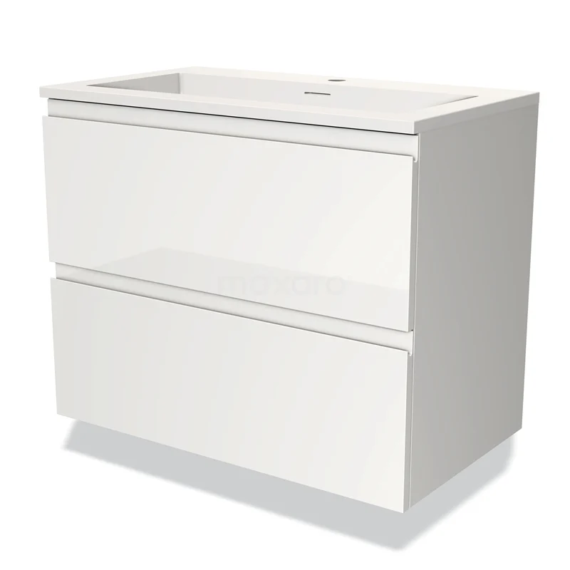 Modulo Bathroom furniture with sink | 80 cm High-gloss white Handle-less front Solid surface 2 Stacked drawers