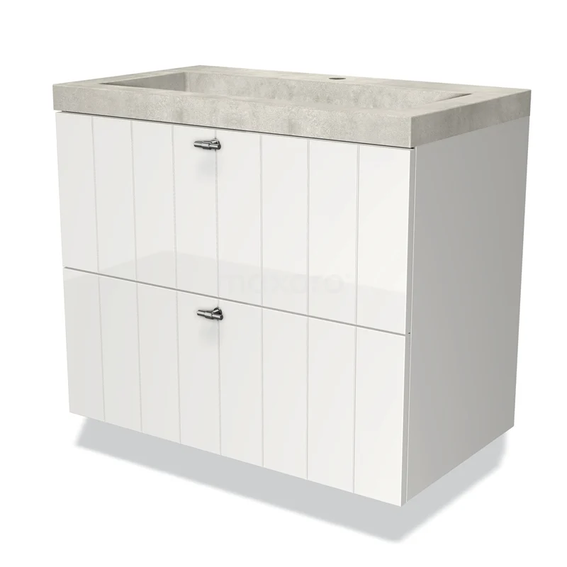 Modulo Bathroom furniture with sink | 80 cm High-gloss white Slat front Concrete 2 Stacked drawers