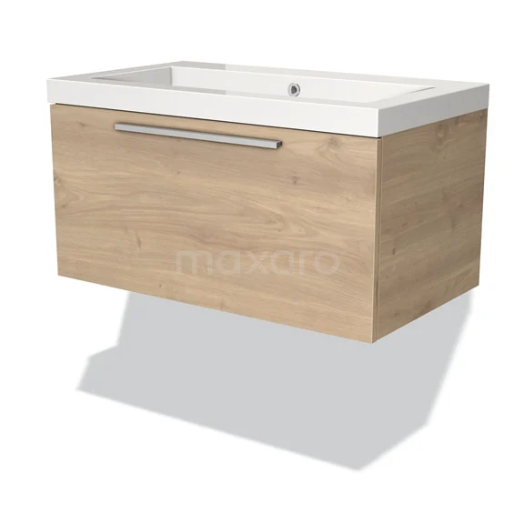 Modulo Bathroom furniture with sink | 80 cm Light brown oak Flat front Mineral marble 1 drawer