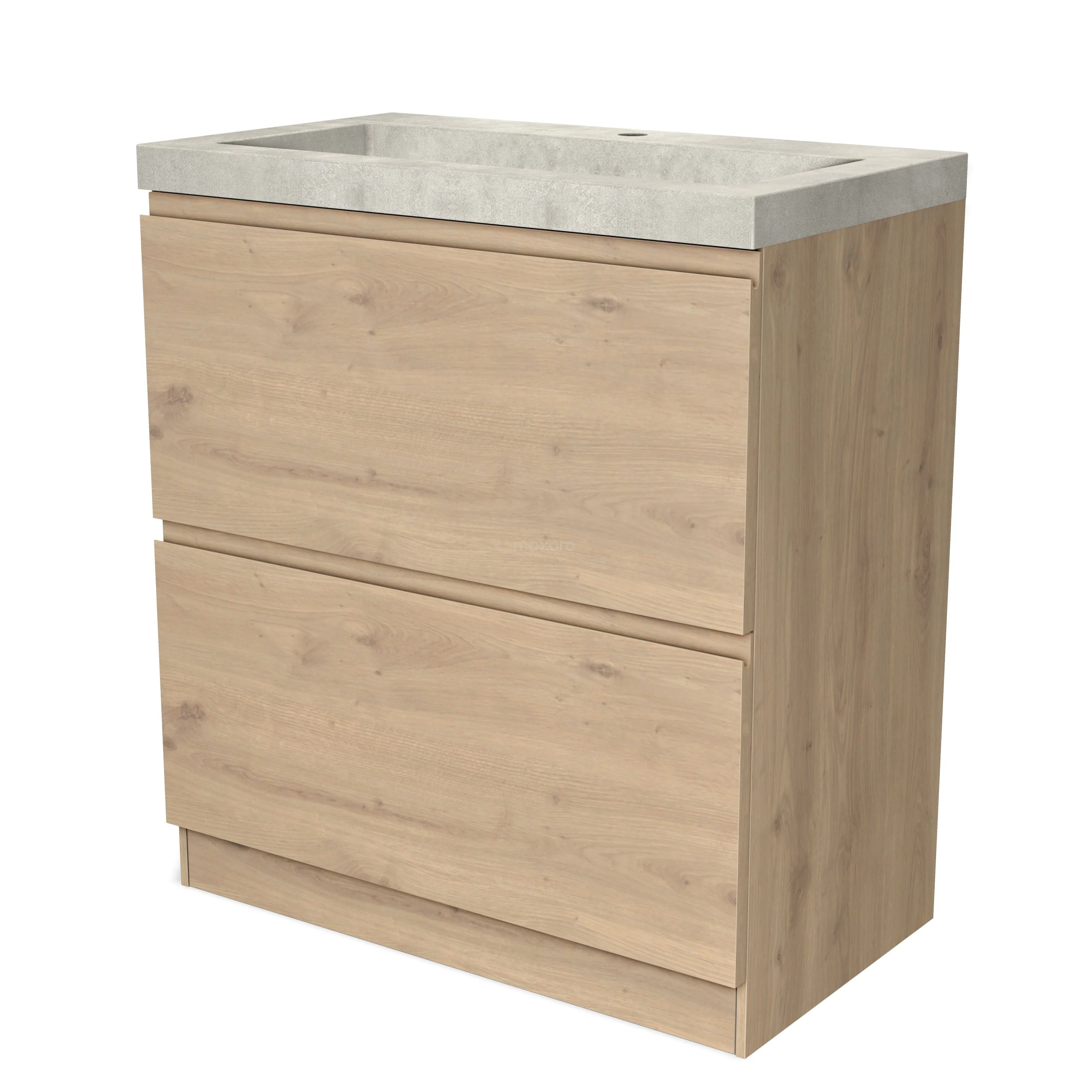 Modulo Bathroom furniture with sink | 80 cm Light brown oak Handle-less front Concrete 2 high drawers standing drawers under each other