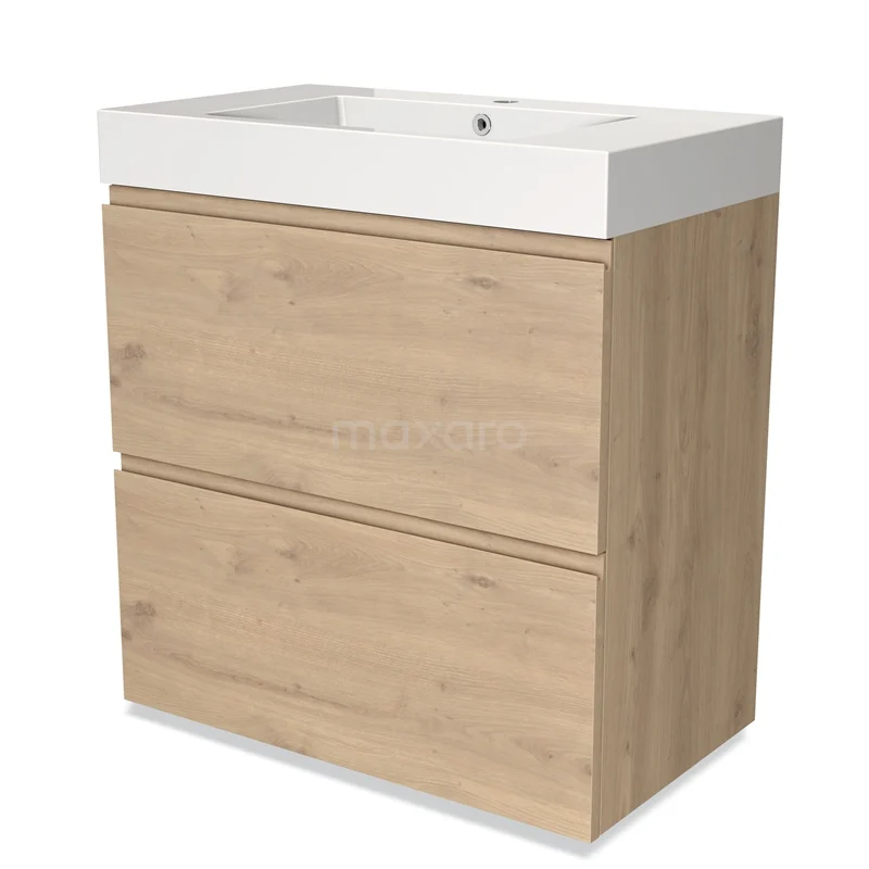 Modulo Bathroom furniture with sink | 80 cm Light brown oak Handle-less front Mineral marble 2 stacked drawers under each other