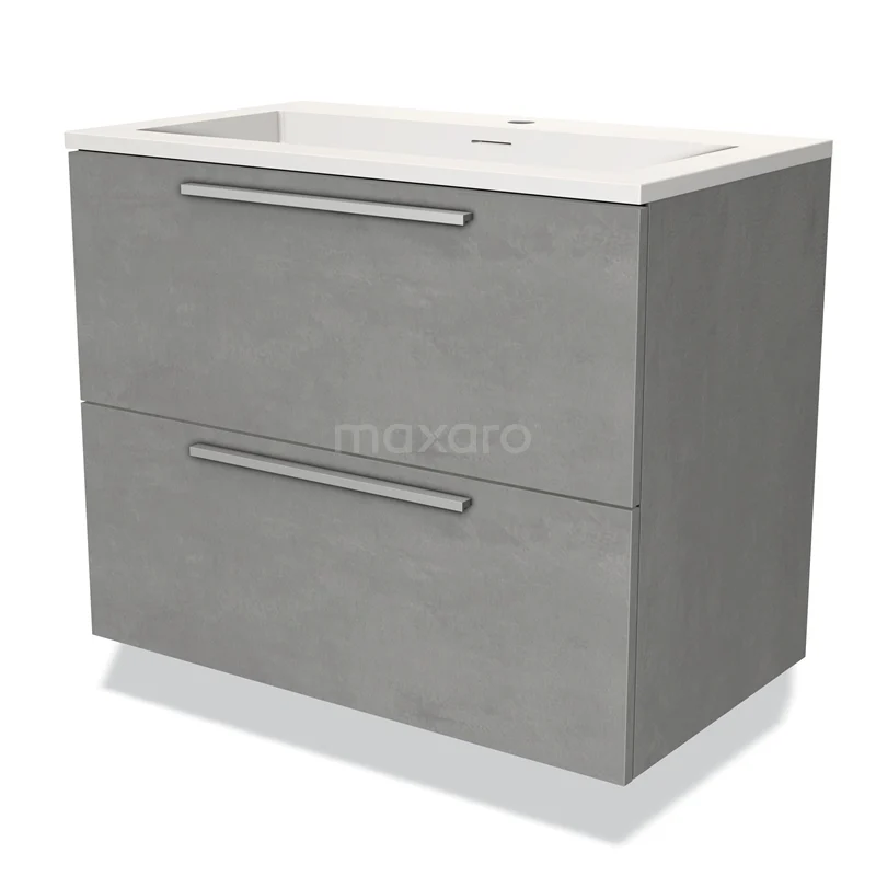 Modulo Bathroom furniture with sink | 80 cm Light grey concrete Flat front Solid surface 2 Stacked drawers