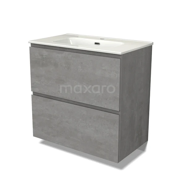 Modulo Bathroom furniture with sink | 80 cm Light grey concrete Handle-less front Ceramic 2 stacked drawers under each other