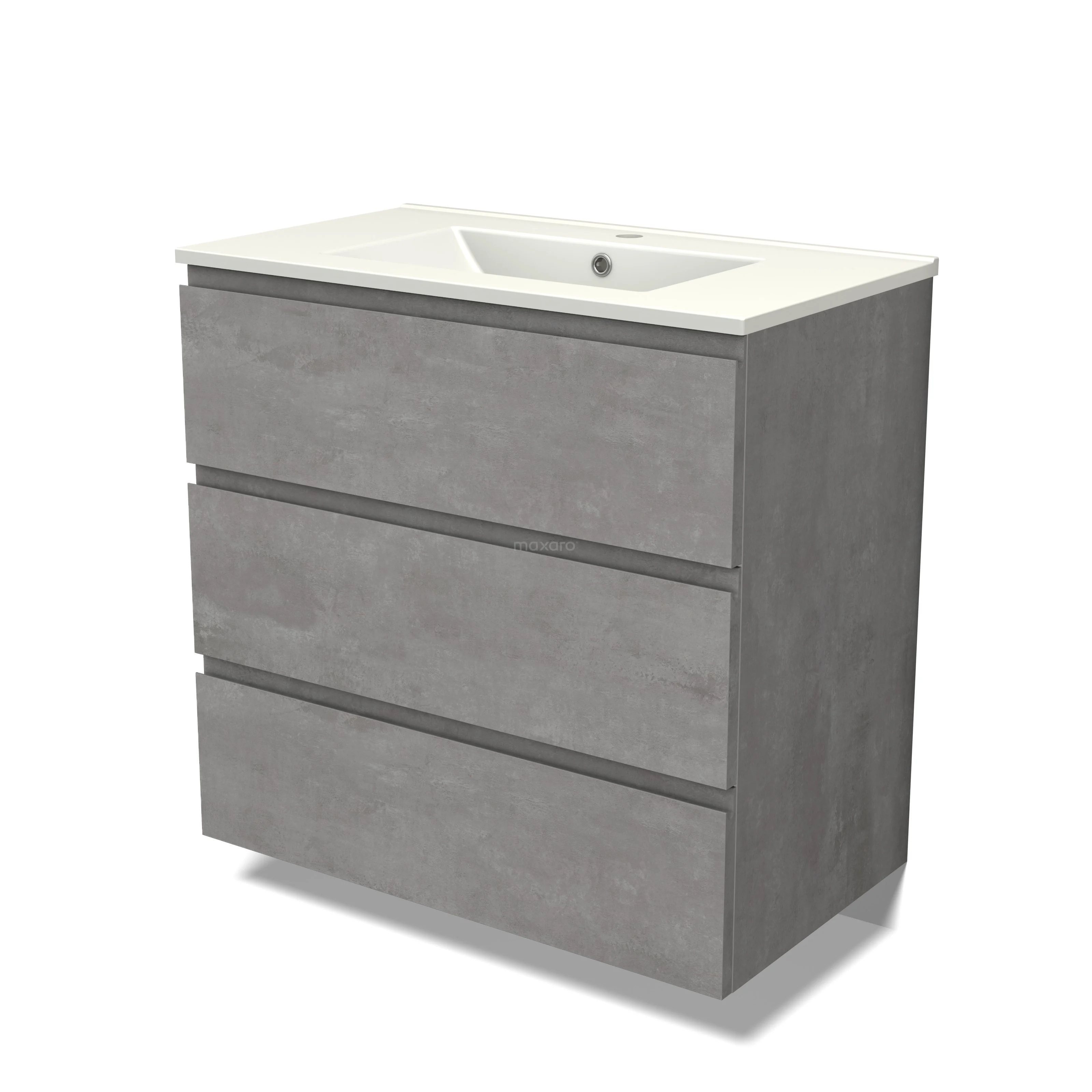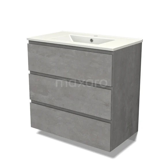 Modulo Bathroom furniture with sink | 80 cm Light grey concrete Handle-less front Ceramic 3 drawers