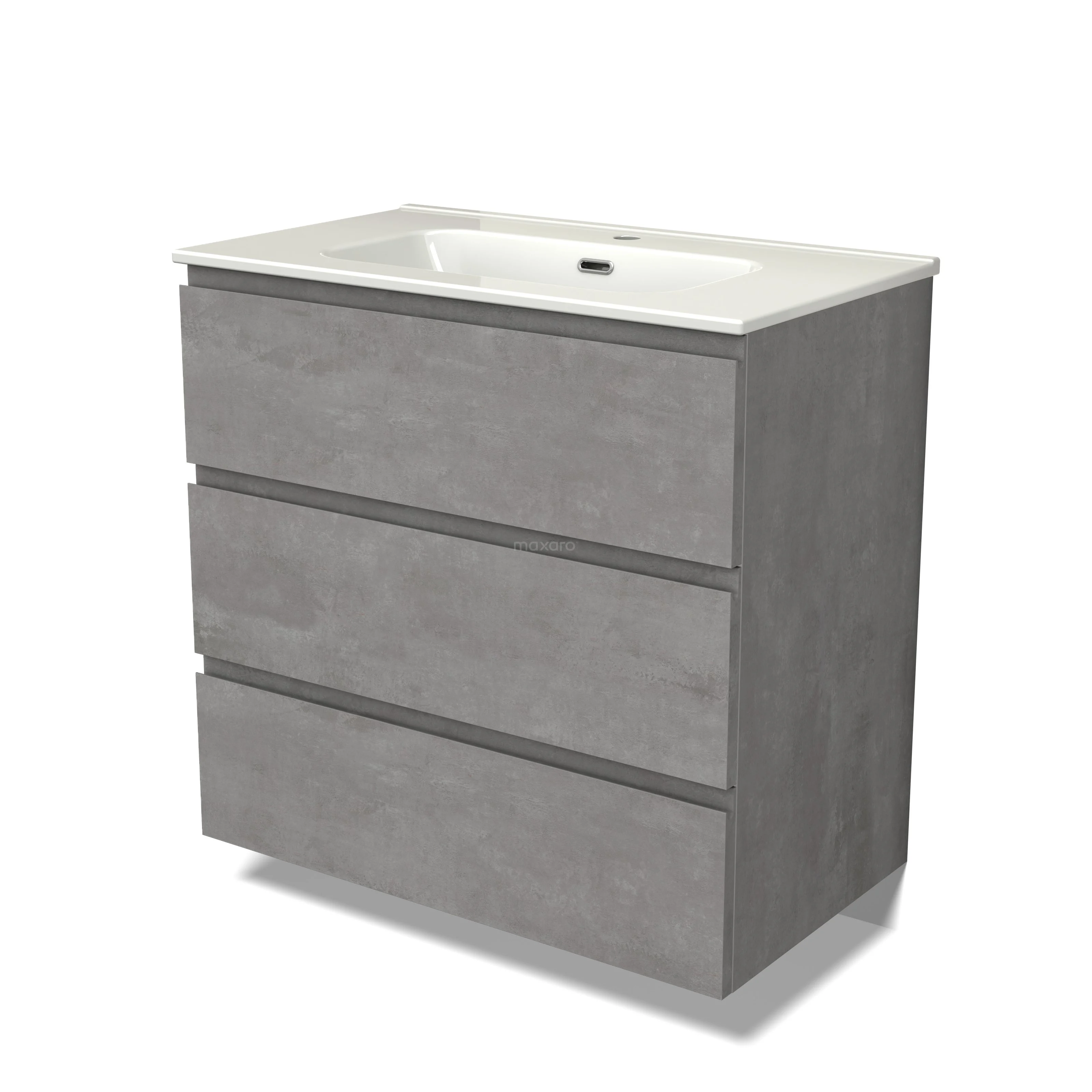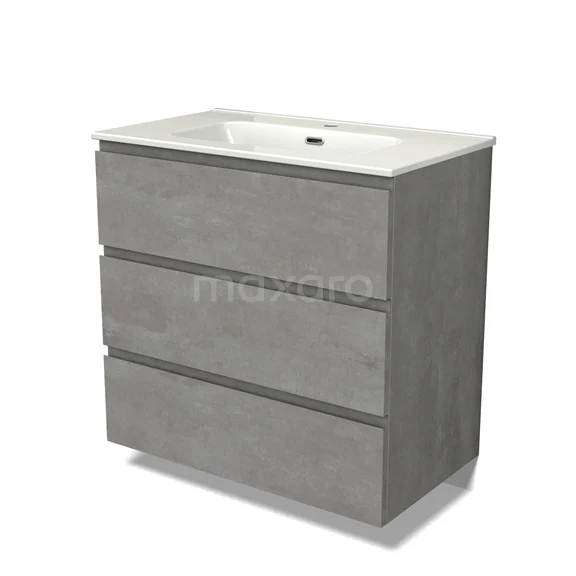 Modulo Bathroom furniture with sink | 80 cm Light grey concrete Handle-less front Ceramic 3 drawers