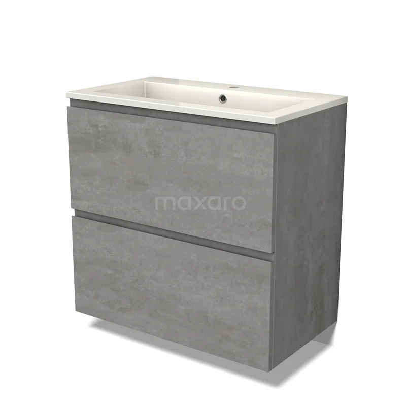 Modulo Bathroom furniture with sink | 80 cm Light grey concrete Handle-less front Mineral marble 2 stacked drawers under each other