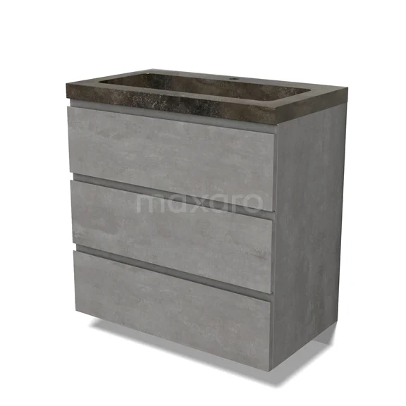 Modulo Bathroom furniture with sink | 80 cm Light grey concrete Handle-less front Natural stone 3 drawers