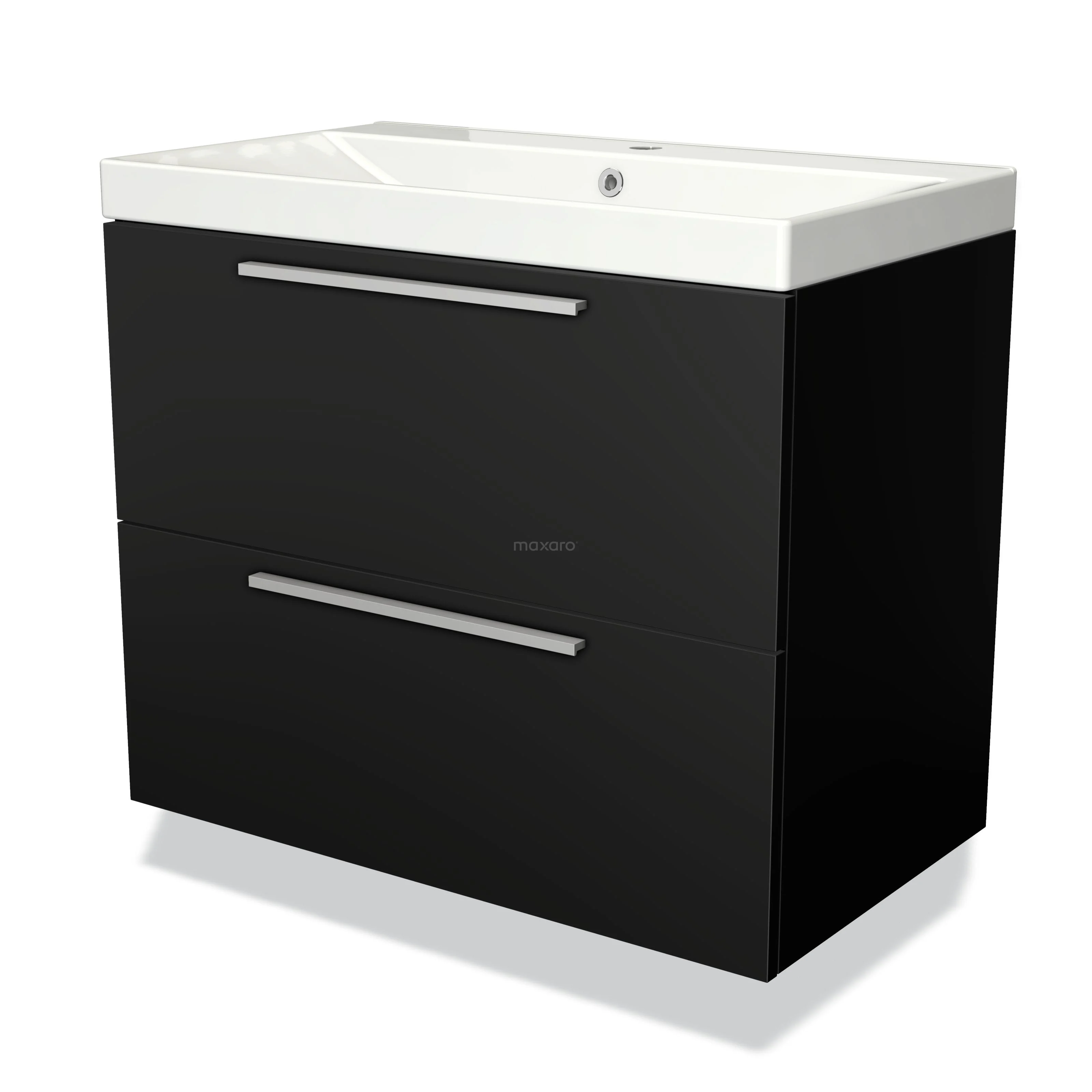 Modulo Bathroom furniture with sink | 80 cm Matte black Flat front Ceramic 2 Stacked drawers