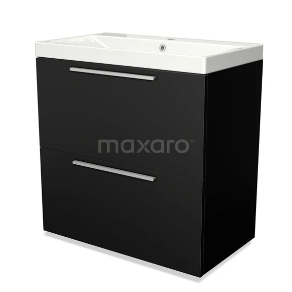 Modulo Bathroom furniture with sink | 80 cm Matte black Flat front Ceramic 2 stacked drawers under each other