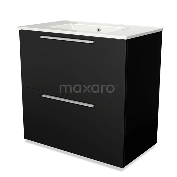 Modulo Bathroom furniture with sink | 80 cm Matte black Flat front Ceramic 2 stacked drawers under each other