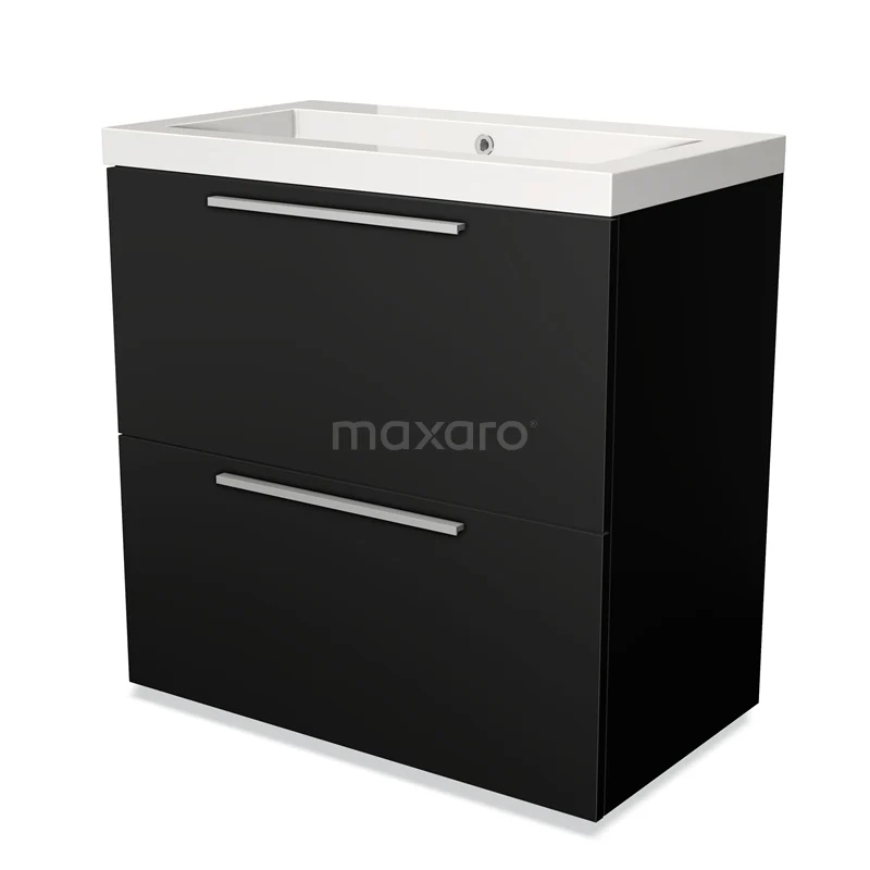Modulo Bathroom furniture with sink | 80 cm Matte black Flat front Mineral marble 2 stacked drawers under each other