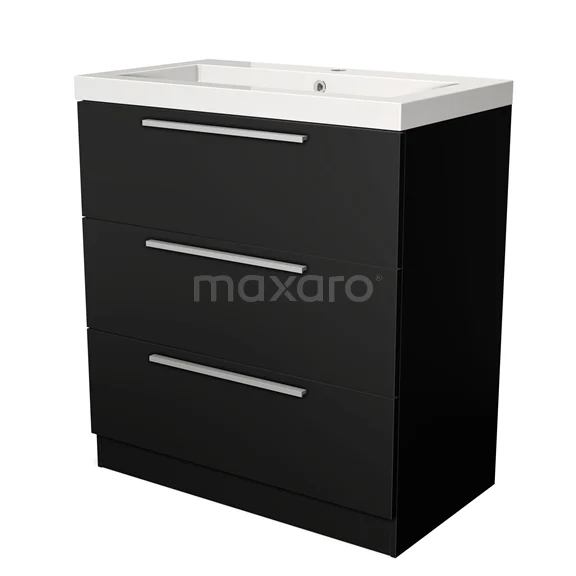 Modulo Bathroom furniture with sink | 80 cm Matte black Flat front Mineral marble 3 standing drawers