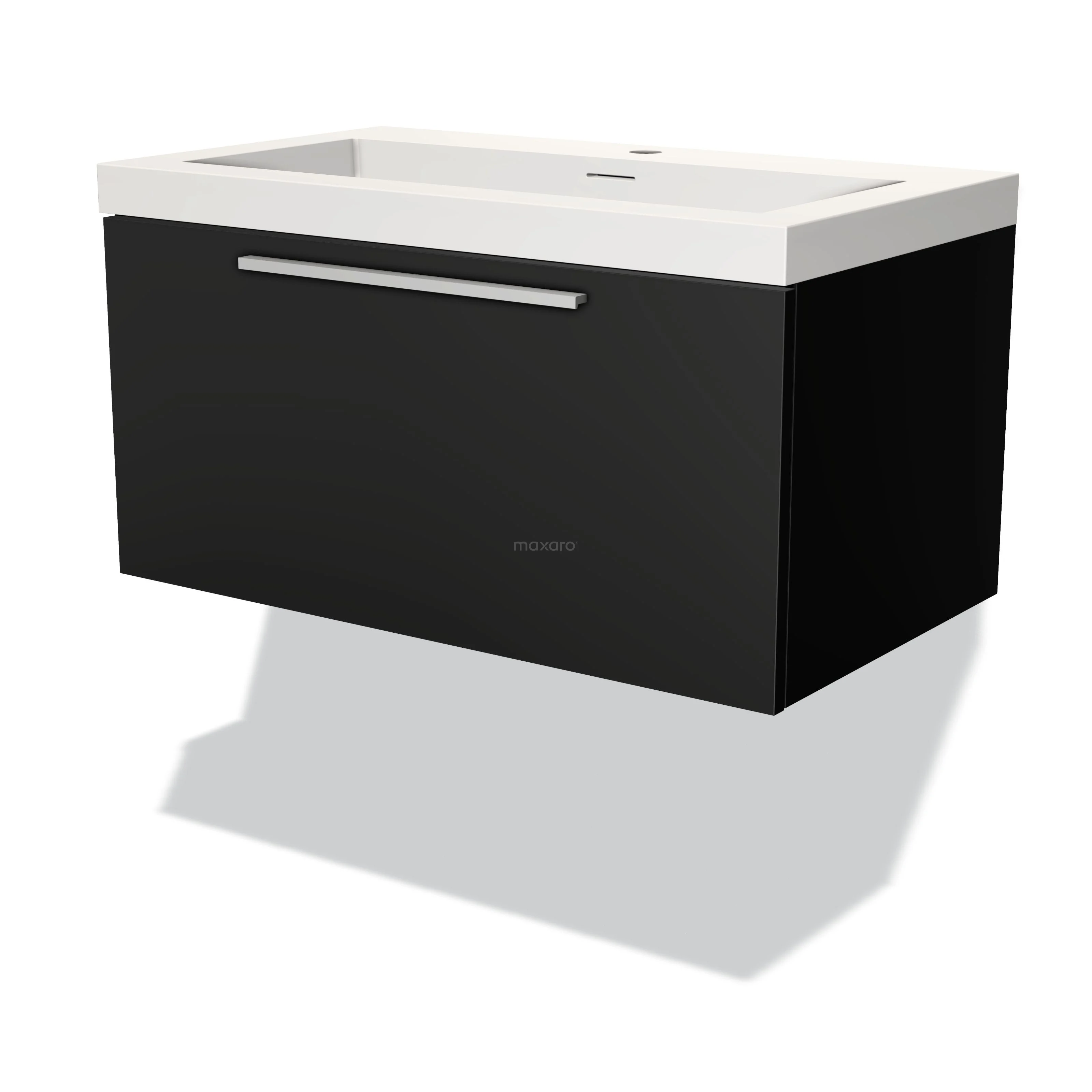 Modulo Bathroom furniture with sink | 80 cm Matte black Flat front Solid surface 1 drawer