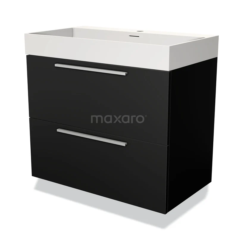 Modulo Bathroom furniture with sink | 80 cm Matte black Flat front Solid surface 2 Stacked drawers