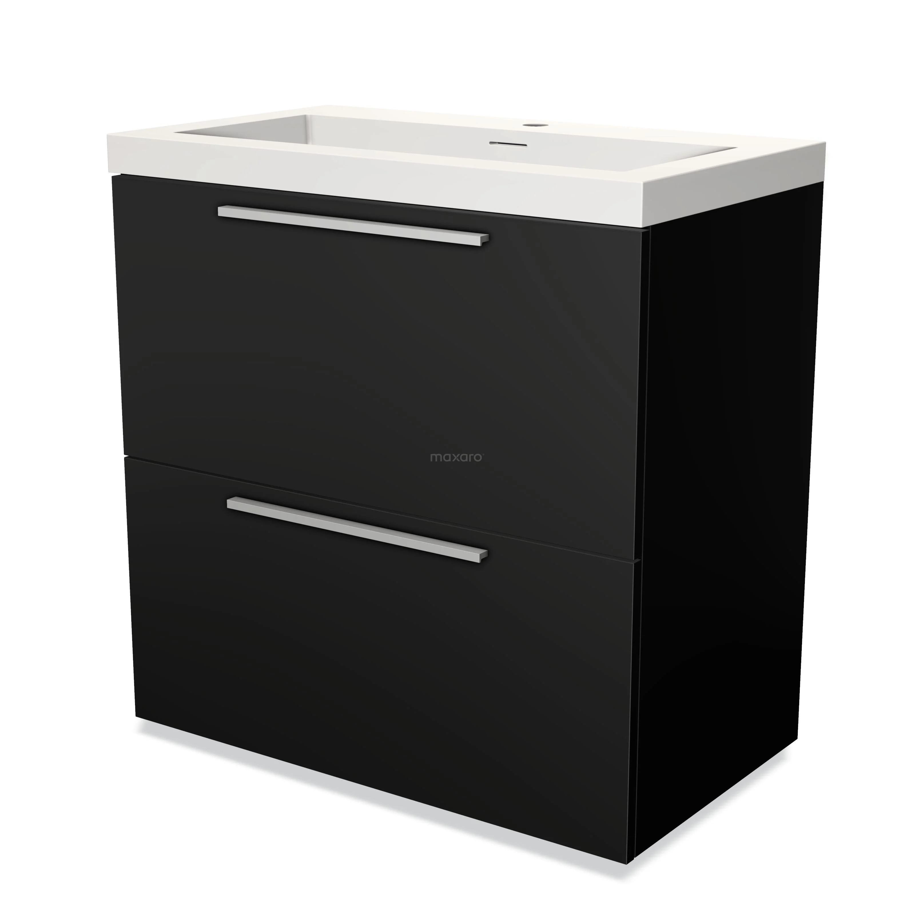 Modulo Bathroom furniture with sink | 80 cm Matte black Flat front Solid surface 2 stacked drawers under each other