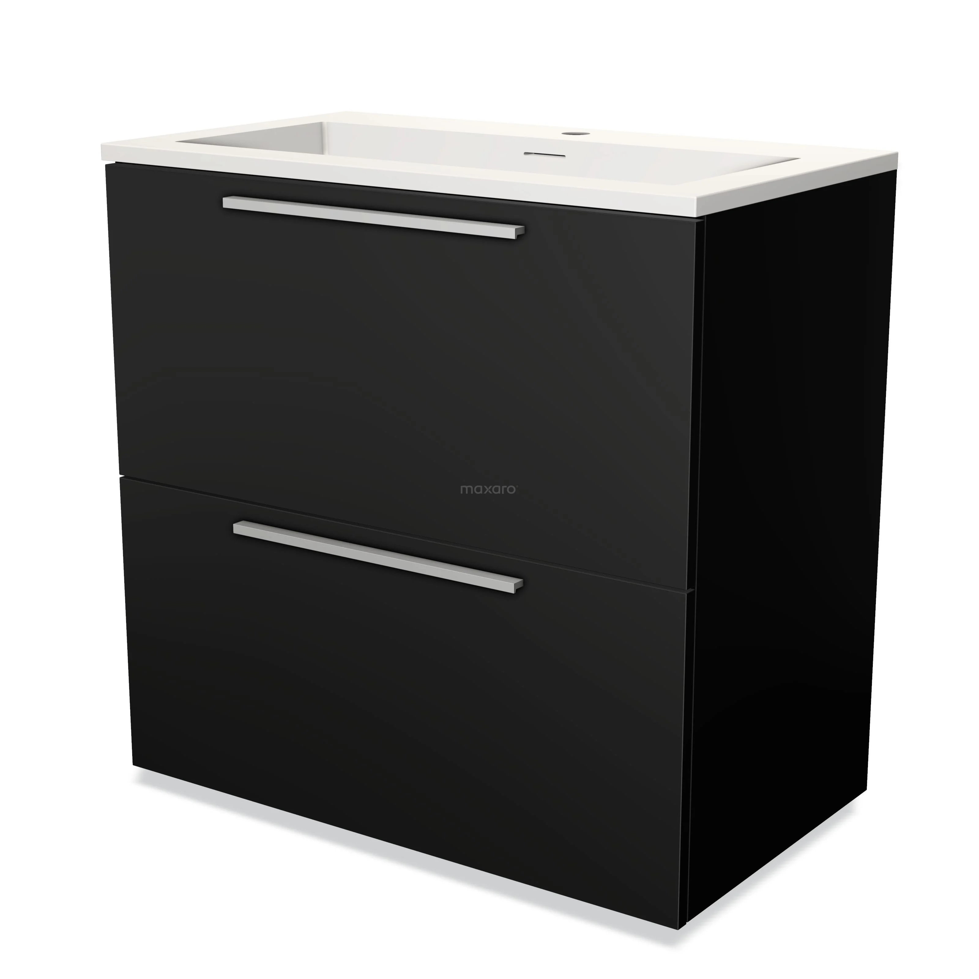Modulo Bathroom furniture with sink | 80 cm Matte black Flat front Solid surface 2 stacked drawers under each other