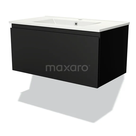 Modulo Bathroom furniture with sink | 80 cm Matte black Handle-less front Ceramic 1 drawer