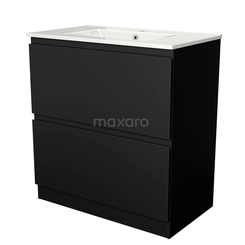 Modulo Bathroom furniture with sink | 80 cm Matte black Handle-less front Ceramic 2 high drawers standing drawers under each other