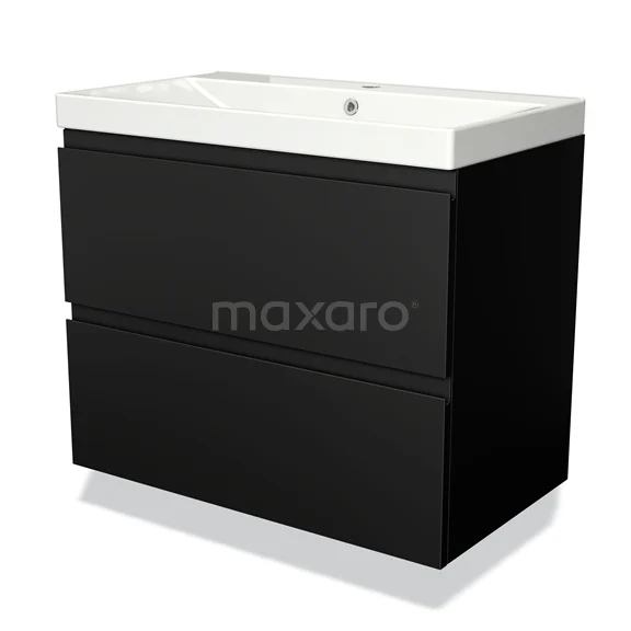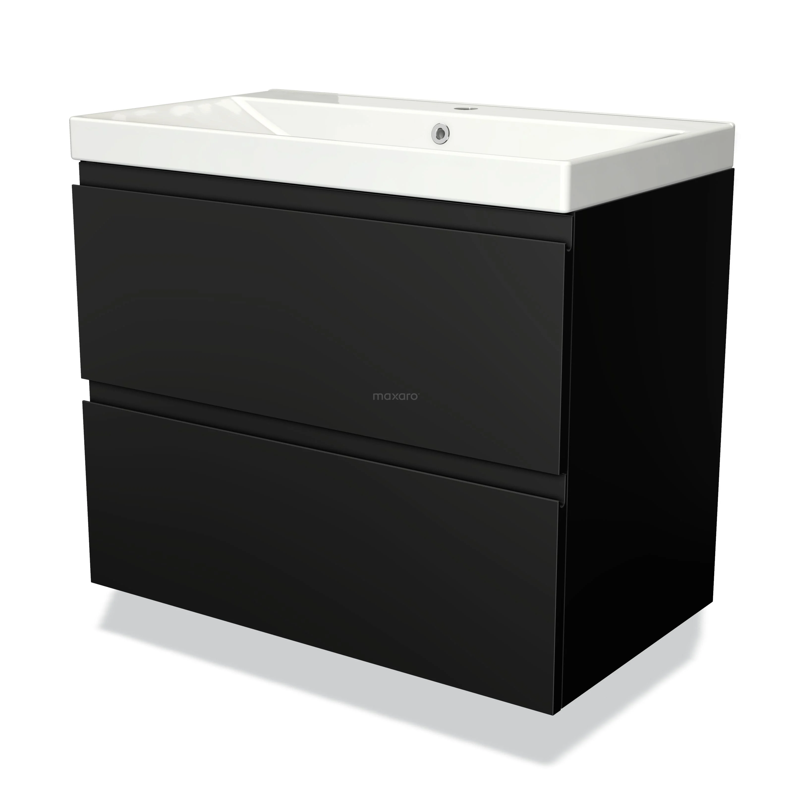 Modulo Bathroom furniture with sink | 80 cm Matte black Handle-less front Ceramic 2 Stacked drawers