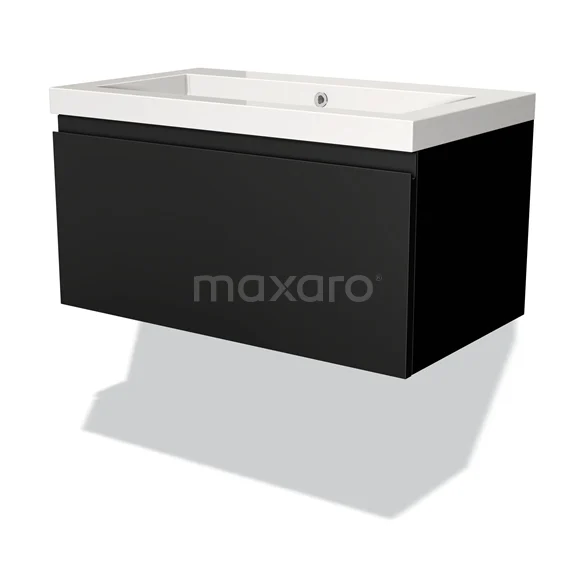 Modulo Bathroom furniture with sink | 80 cm Matte black Handle-less front Mineral marble 1 drawer