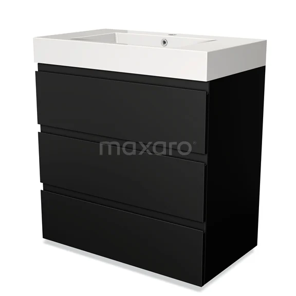 Modulo Bathroom furniture with sink | 80 cm Matte black Handle-less front Mineral marble 3 drawers