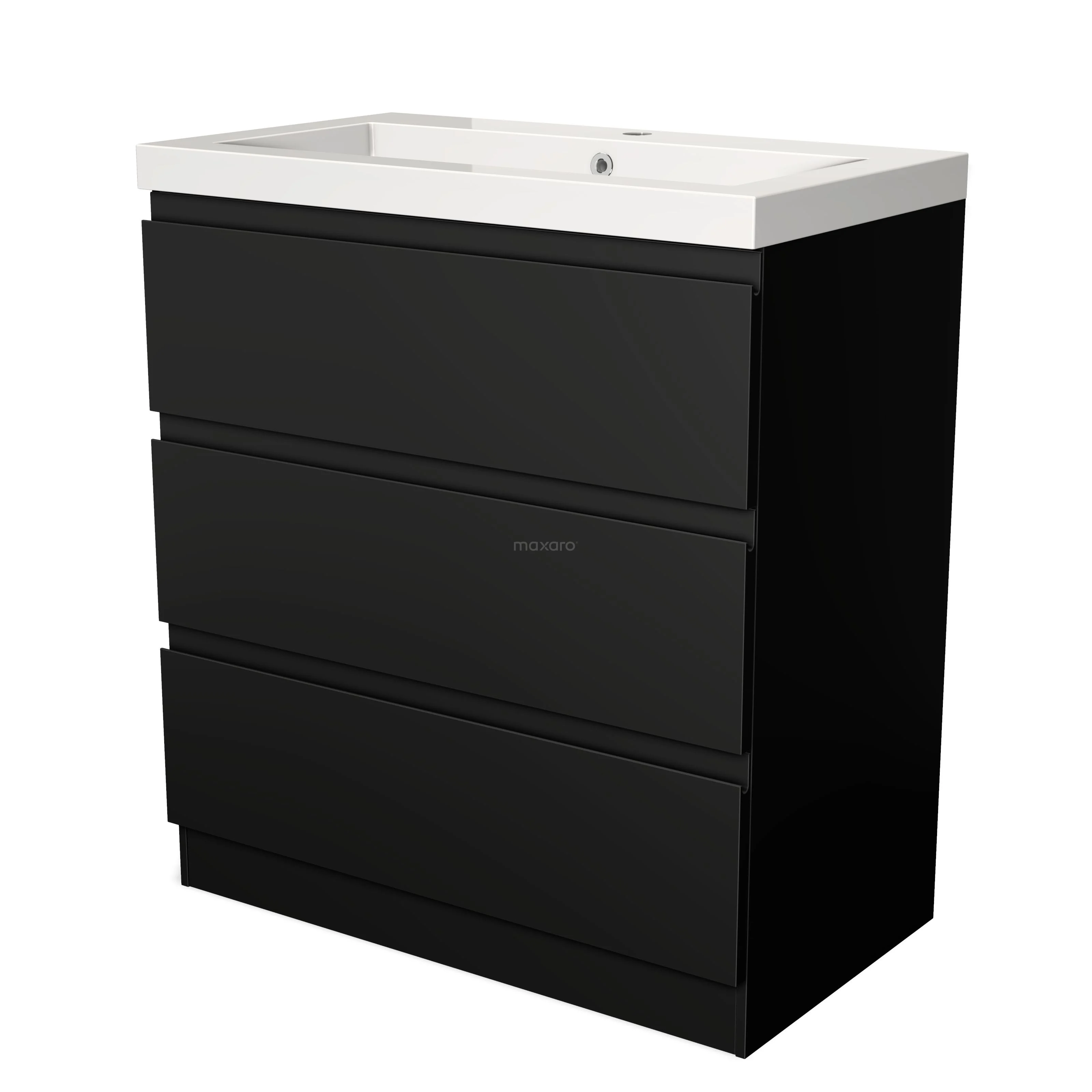 Modulo Bathroom furniture with sink | 80 cm Matte black Handle-less front Mineral marble 3 standing drawers